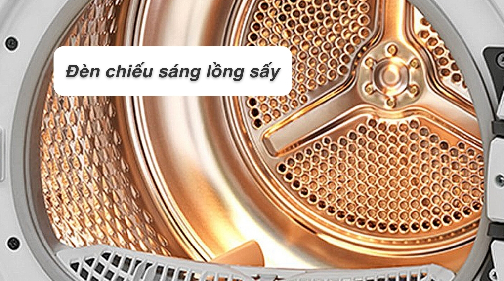 – Đèn chiếu sáng lồng sấy giúp bạn dễ dàng bỏ quần áo vào và lấy quần áo ra, hạn chế việc quần áo nhỏ còn sót lại và tránh bỏ quên sau mỗi chu trình sấy.