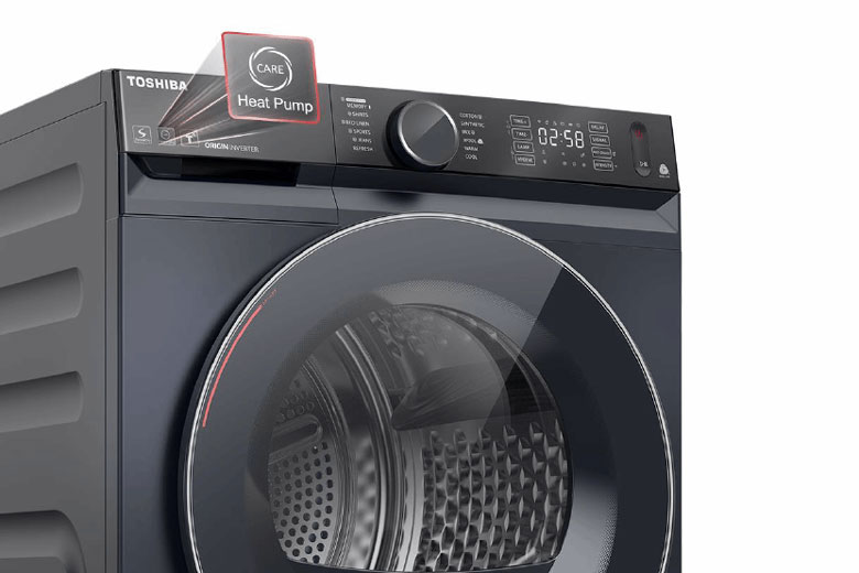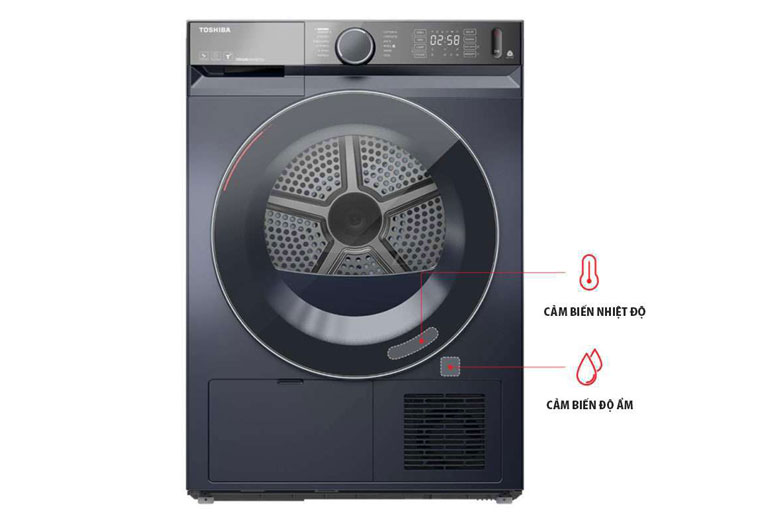- Máy sấy quần áo Toshiba thiết kế cửa trước hết mực sang trọng