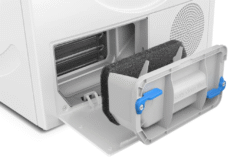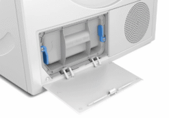 Máy sấy quần áo Heat pump bơm nhiệt không cần phải đi đường thông hơi hoặc đường thoát nước, vì vậy bạn có thể đặt chúng ở bất cứ đâu thuận tiện nhất cho mình. Máy sấy quần áo thông hơi thường yêu cầu bạn phải luồn ống nước vào hoặc để một đường ống nhô ra ngoài cửa sổ – nhưng bạn sẽ không bao giờ gặp vấn đề đó với máy sấy quần áo bơm nhiệt vì tất cả độ ẩm được lưu trữ trong một bình chứa dễ làm cạn.