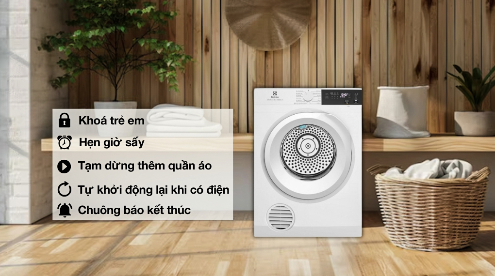 – Chức năng hẹn giờ sấy để người dùng chủ động trong việc giặt giũ.