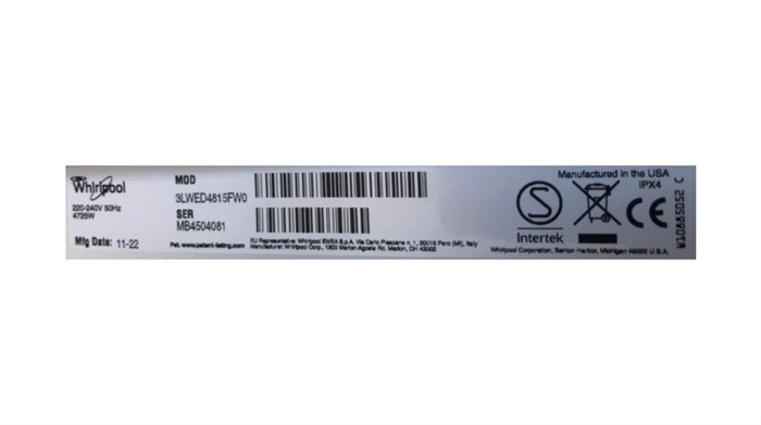 – Máy sấy quần áo Whirlpool có công suất hoạt động mạnh mẽ 4725W.