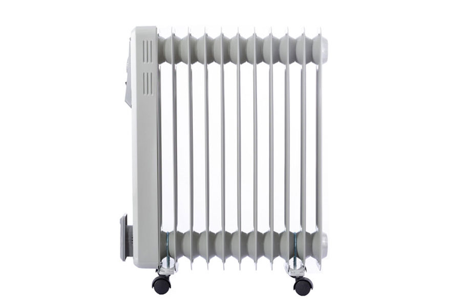 Máy sưởi dầu trang bị 4 bánh xe và tay kéo giúp di chuyển máy tiện lợi.