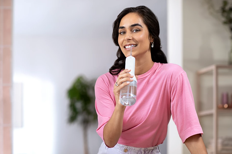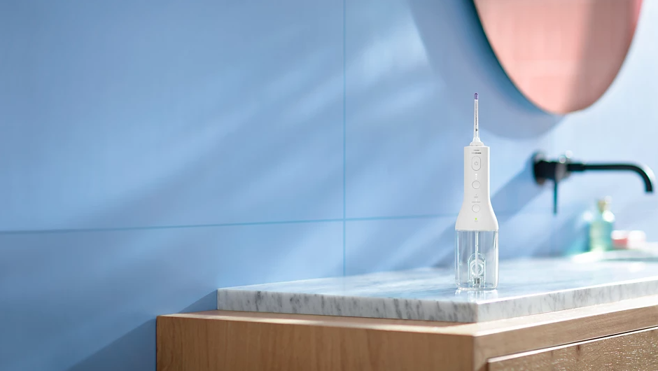 Chỉ cần trỏ vào vị trí, nhấn nút và làm sạch để xịt rửa kẽ răng hiệu quả hơn. Trỏ đầu xịt vào kẽ răng và dọc theo đường viền nướu – và để máy làm tất cả mọi việc cho bạn!