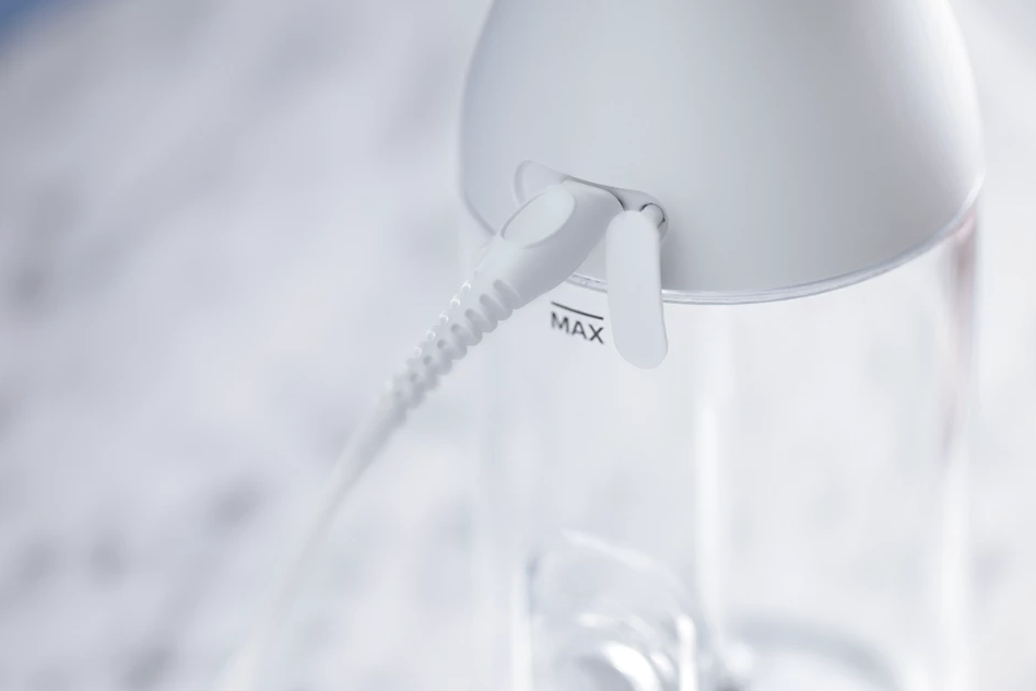 Ngăn chứa nước có dung tích 250 ml chứa đủ nước để làm sạch trong 60 giây theo khuyến nghị. Chỉ cần vặn và tháo ra hoặc sử dụng lỗ châm nước bên hông để châm nước dễ dàng.