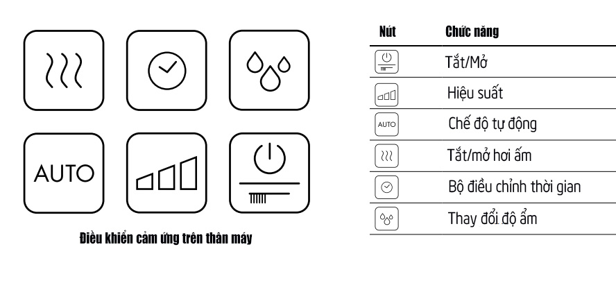 – 2 lựa chọn hơi ẩm NÓNG hoặc LẠNH: trong những thời điểm thời tiết lạnh giá hoặc bạn không muốn có cảm giác hơi lạnh trong phòng, chức năng tạo hơi ẩm ấm sẽ mang tới cảm giác dễ chịu hơn cho người sử dụng.