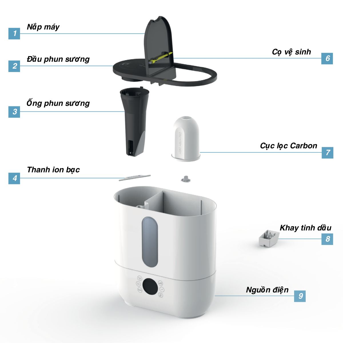 – Thanh khử khuẩn Ion bạc (Ionic Silver Stick®) khử sạch vi khuẩn trong nước, đảm bảo nguồn hơi ẩm luôn tinh khiết.