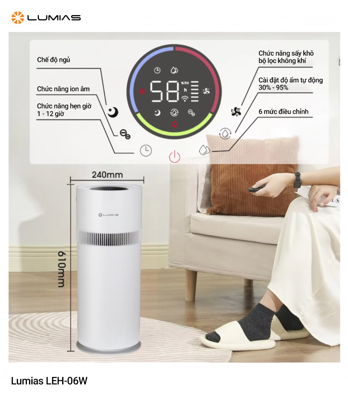 Máy tạo độ ẩm Lumias LEH-06W phục vụ tốt hơn với 6 mức độ tạo ẩm