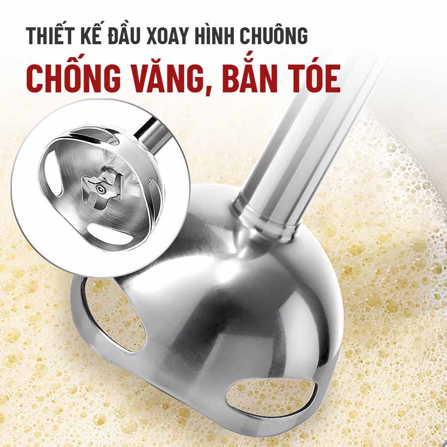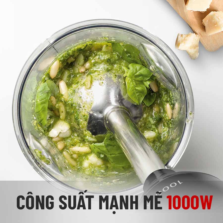 - Phụ kiện kèm theo gồm có bộ ngâm cắt, bộ xay, bộ đánh trứng và hộp chứa thực phẩm.