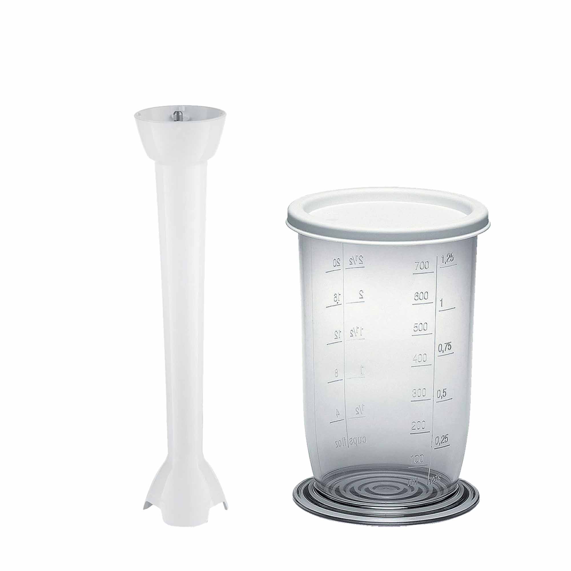Máy xay cầm tay được tích hợp thêm chân cắt mỏng hỗ trợ xay cháo cho trẻ nhỏ hoặc các món tráng miệng, hay xay trong các ly cốc cỡ nhỏ