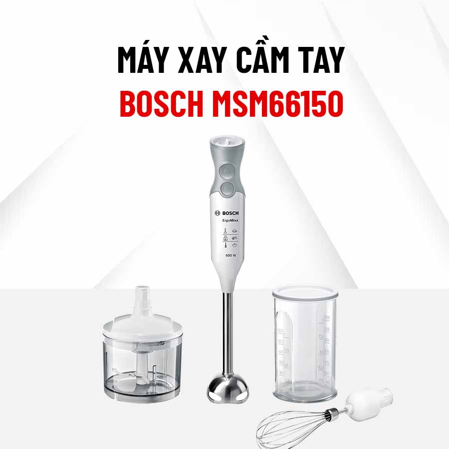 Kích thước của máy xay cầm tay Bosch MSM66150 là 393 x 55 x 62 mm.
