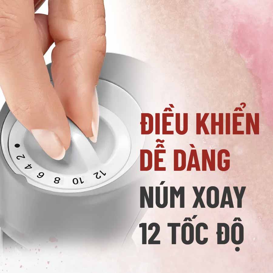 Ngoài nút nhấn khởi động trên tay cầm, người dùng cũng có thể chỉnh mức tốc độ bạn muốn thống qua núm vặn 12 cấp tốc độ. Nhờ đó, bạn luôn kiểm soát cấp độ chính xác cho việc xay trộn.