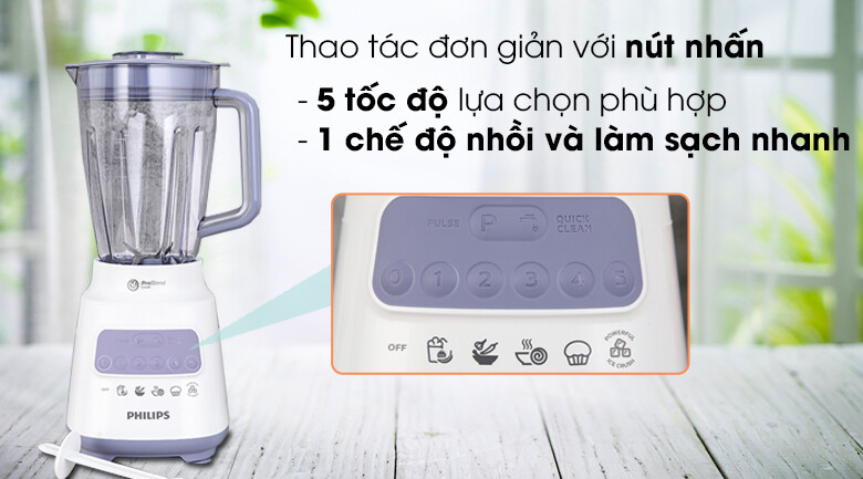 Có 5 tốc độ xay và 1 nút nhồi, sử dụng đơn giản với các nút nhấn nhạy bén