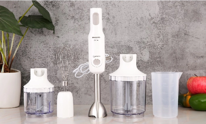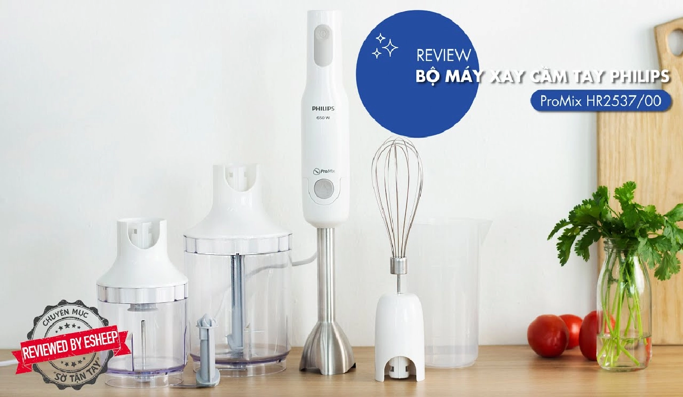 Máy xay sinh tố cầm tay Philips HR2537/00 sở hữu thiết kế thanh lịch, kiểu dáng khá nhỏ gọn, máy cực thích hợp để chế biến các món ăn cho trẻ nhỏ, gia đình ít thành viên,… dễ dàng sử dụng và cất giữ gọn gàng trong tủ mà không chiến quá nhiều nhiều tích. Thân máy được gắn liền với lưỡi dao, cóc xay sinh tố và qua đánh trứng giúp bạn chế biến đa dạng các món ăn chỉ qua vài thao tác, tiết kiệm thời gian tối đa.