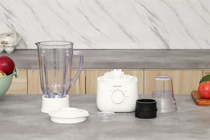 – Máy xay sinh tố Panasonic sở hữu vẻ ngoài thanh lịch với các đường nét được thiết kế tỉ mỉ, sắc trắng chủ đạo hài hòa với mọi không gian bếp.