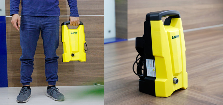 Máy phun áp lực nước Lavor Smart 120 sở hữu thiết kế tiện dụng với tay cầm chắc chắn, tạo sự thoải mái khi cầm nắm, trọng lượng chỉ 5.6kg giúp người dùng di chuyển nhẹ nhàng không tốn nhiều công sức. Thân máy dạng đứng nhỏ gọn giúp việc lưu trữ và sắp đặt máy dễ dàng, không chiếm quá nhiều diện tích. Lớp vỏ máy làm bằng chất liệu nhựa cao cấp chống nước cứng cáp được hoàn thiện tốt có màu vàng phối đen sang trọng nổi bật, đẹp mắt.