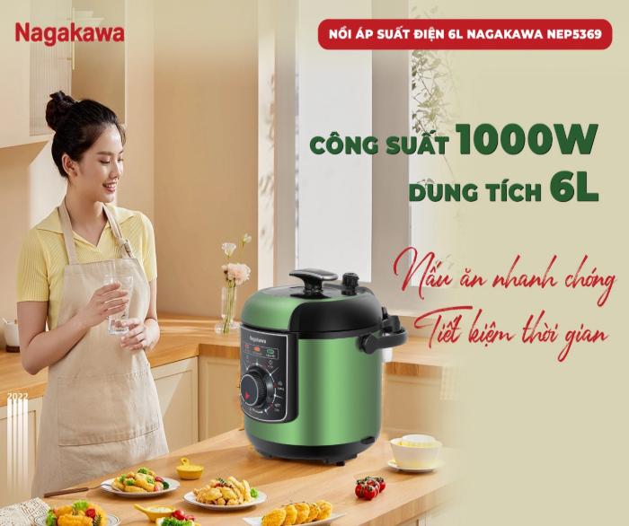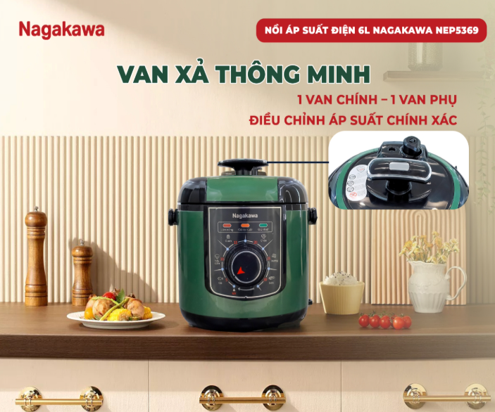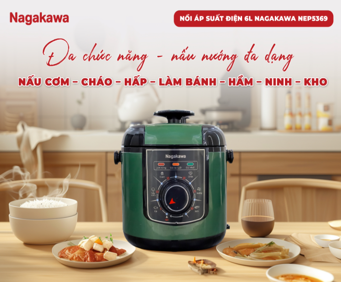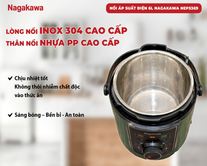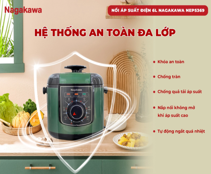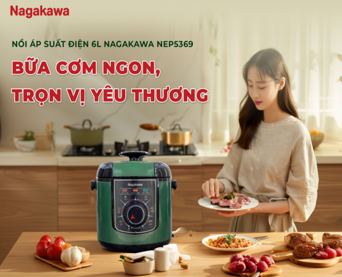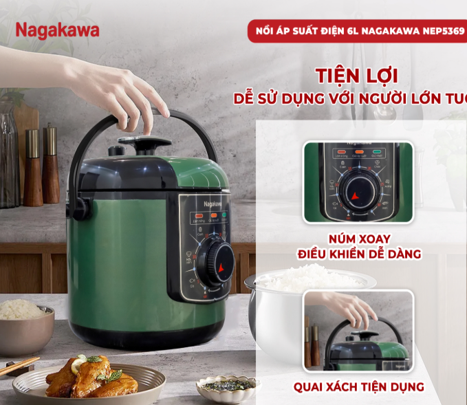 Cuộc sống hiện đại với guồng quay công việc bận rộn khiến bạn đôi khi không có đủ thời gian để chuẩn bị những bữa cơm ngon cho gia đình? Nồi áp suất điện 6L Inox 304 Nagakawa NEP5369 sẽ là trợ thủ đắc lực, giúp bạn nấu ăn nhanh chóng, tiện lợi mà vẫn đảm bảo an toàn và giữ trọn dinh dưỡng trong từng món ăn.