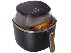 Công nghệ RapidAir Plus của Philips giúp không khí nóng được phân bổ đều khắp nồi, đảm bảo thực phẩm chín đều cả trong lẫn ngoài, đồng thời giảm thiểu lượng dầu mỡ tới 90%. Nhờ vậy, các món ăn không chỉ ngon mà còn ít calo, phù hợp cho những người ăn kiêng hoặc muốn duy trì chế độ ăn lành mạnh.