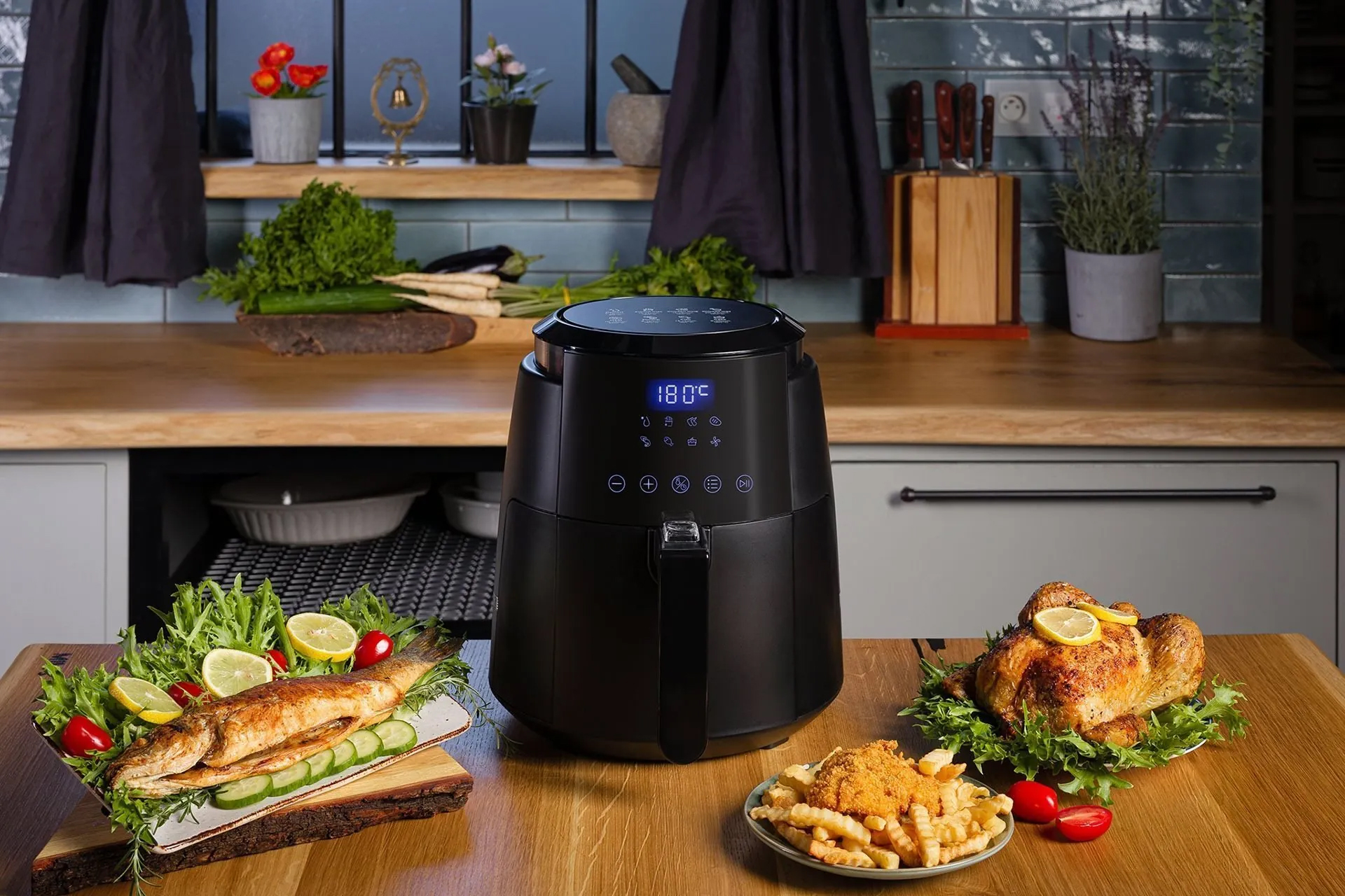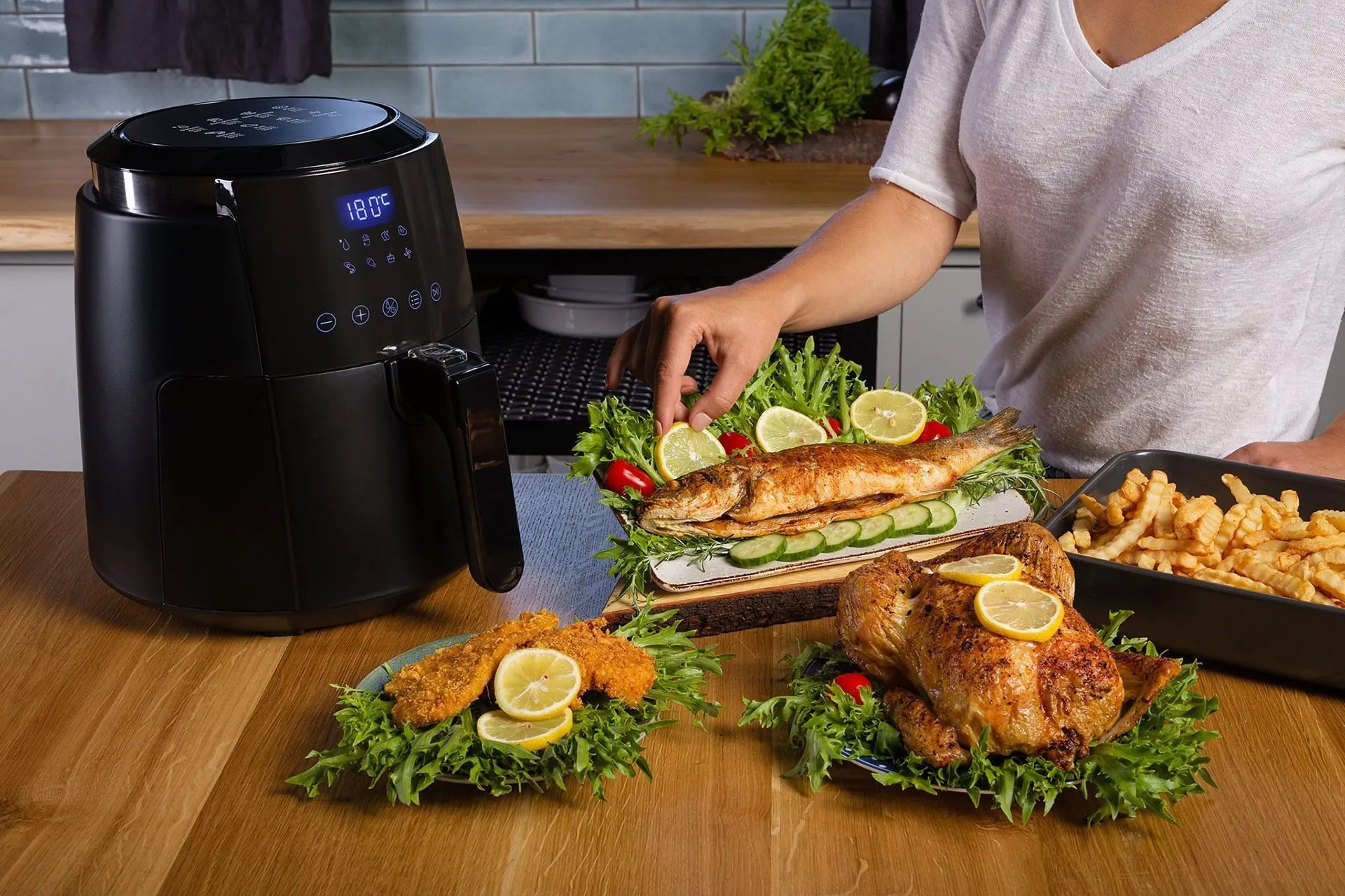 Với màn hình LED được ghi chú thời gian, nhiệt độ rõ ràng giúp bạn lựa chọn chế độ chiên phù hợp với thực phẩm dễ dàng ngay từ lần đầu sử dụng. Điều khiển cảm ứng nhạy bén cho phép bạn tùy chỉnh nhiệt độ một cách chính xác trong khoảng từ 70 đến 200ºC, thời gian trong khoảng 5 đến 60 phút dễ dàng và tiện lợi, chỉ cần chạm nhẹ.