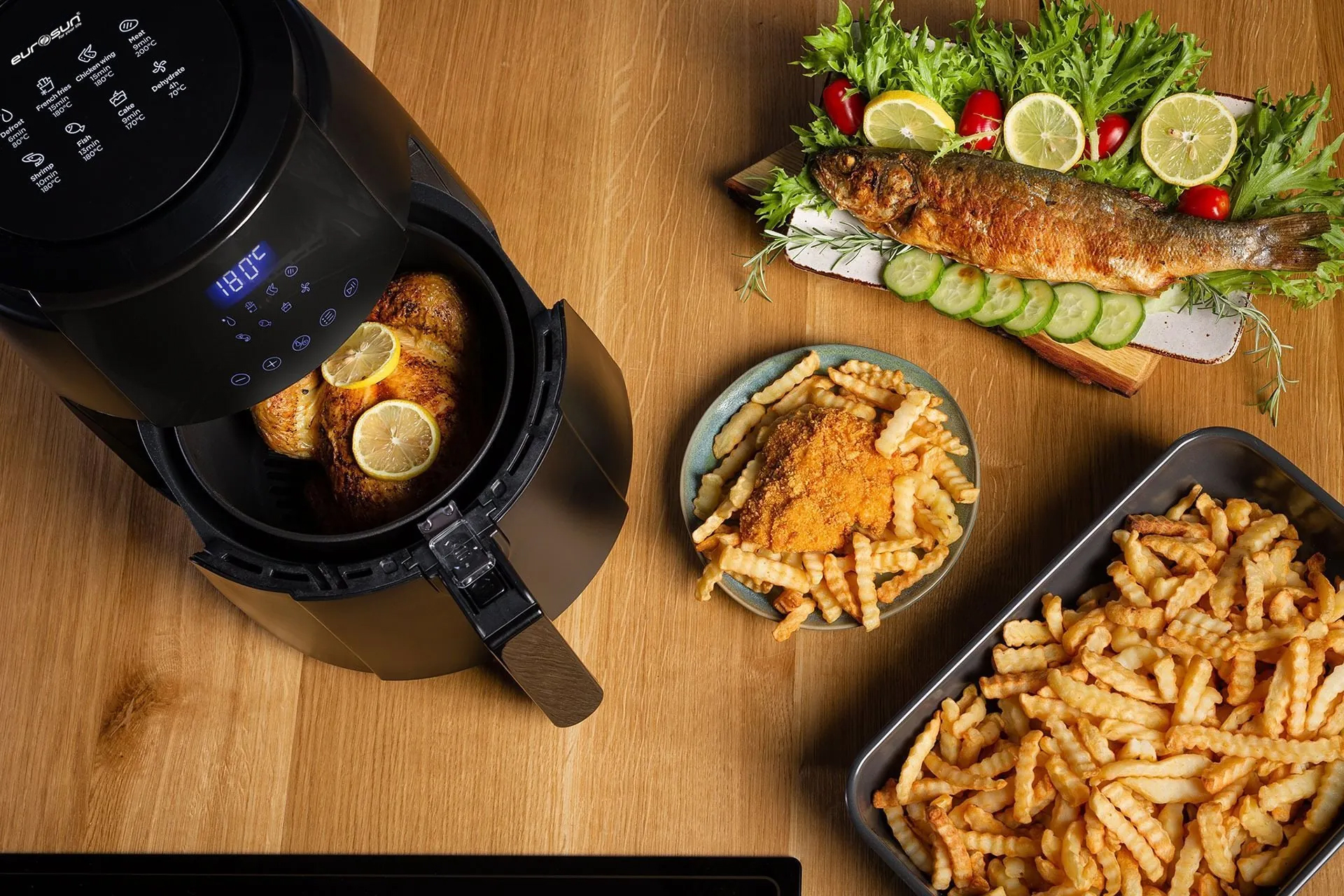 Nồi chiên không dầu là một bước phát triển mới trong công nghệ chế biến thức ăn, đặc biệt với các món chiên rán. Với công nghệ đốt nóng chân không Rapid Air ứng dụng trong nồi chiên Eurosun, việc chiên rán không những nhanh gọn hơn mà còn tốt hơn cho sức khỏe.