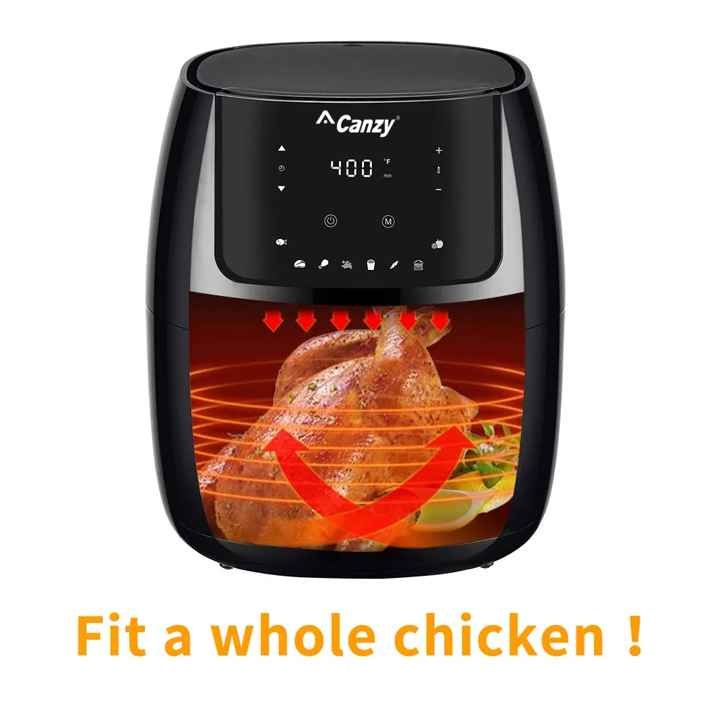 Nồi chiên Canzy CZ-K11Plus dễ sử dung với màn hình kỹ thuật số được cài đặt sẵn các chương trình để nấu khoai tây, thịt, cá và đùi gà đông lạnh chỉ với 1 lần chạm. Bên cạnh đó, nhờ công nghệ làm nóng tức thời thức ăn của bạn sẽ được nấu chín nhanh hơn 1,5 lần so với lò nướng. Ưu điểm lớn nhất là bạn không cần làm nóng trước. Chỉ cần bật nồi chiên và bắt đầu nấu. Việc vệ sinh nồi cũng cực kì dễ dàng, tấm lưới chống dính có thể tháo rời. Bạn có thể dễ dàng rửa sạch giỏ và ngăn kéo tháo rời phủ lớp chống dính bằng máy rửa chén.