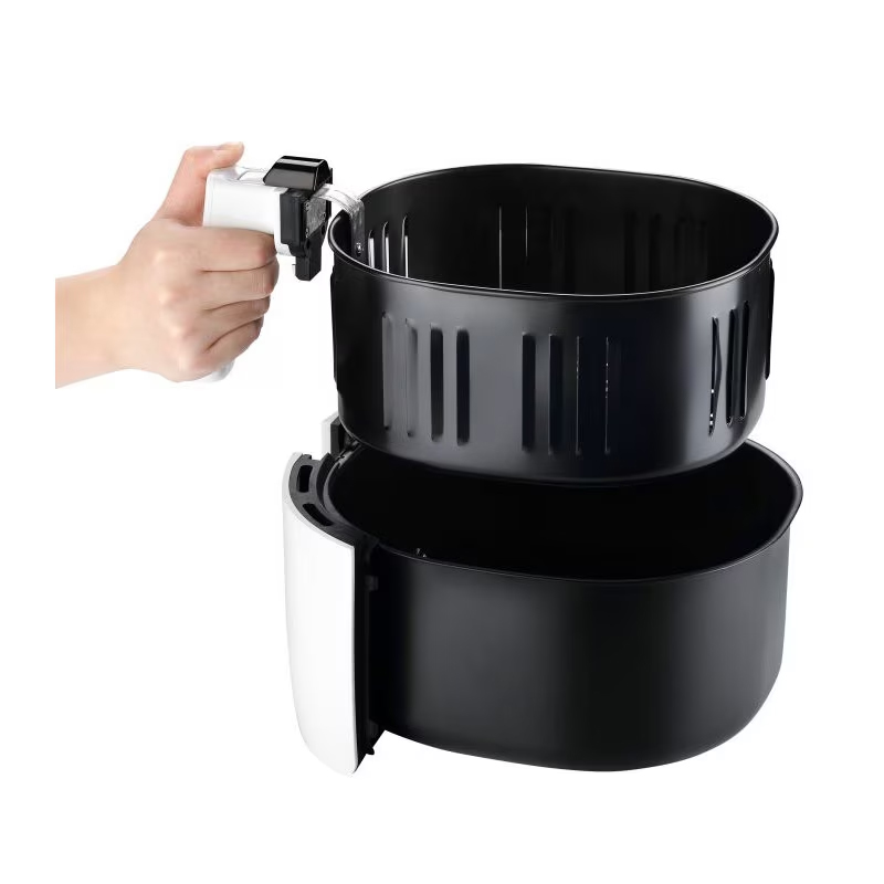 Tay cầm cách nhiệt, cầm nắm không bị nóng, dễ dàng rút ra khỏi nồi chiên để vệ sinh bên trong và cất giữ gọn gàng sau khi sử dụng.