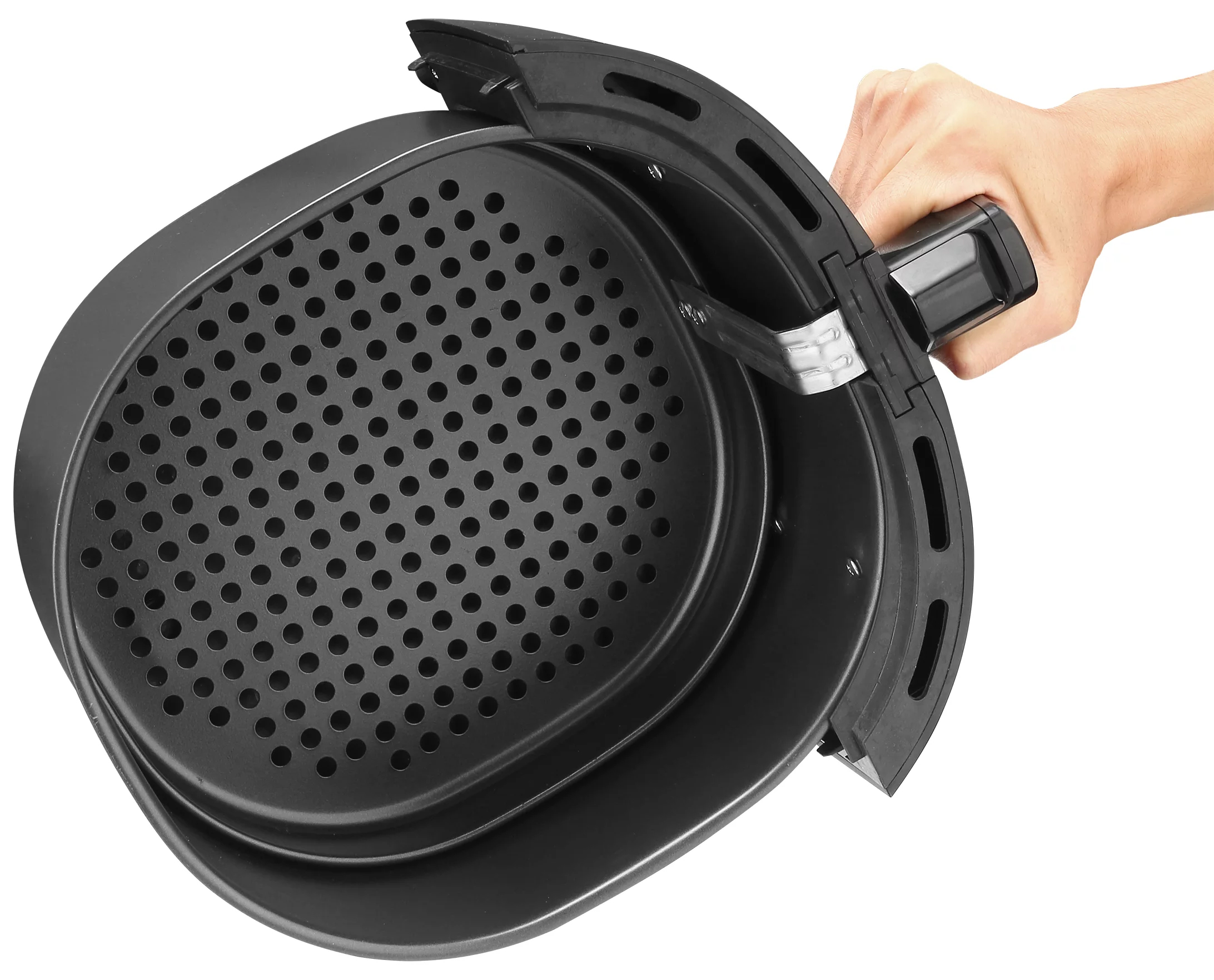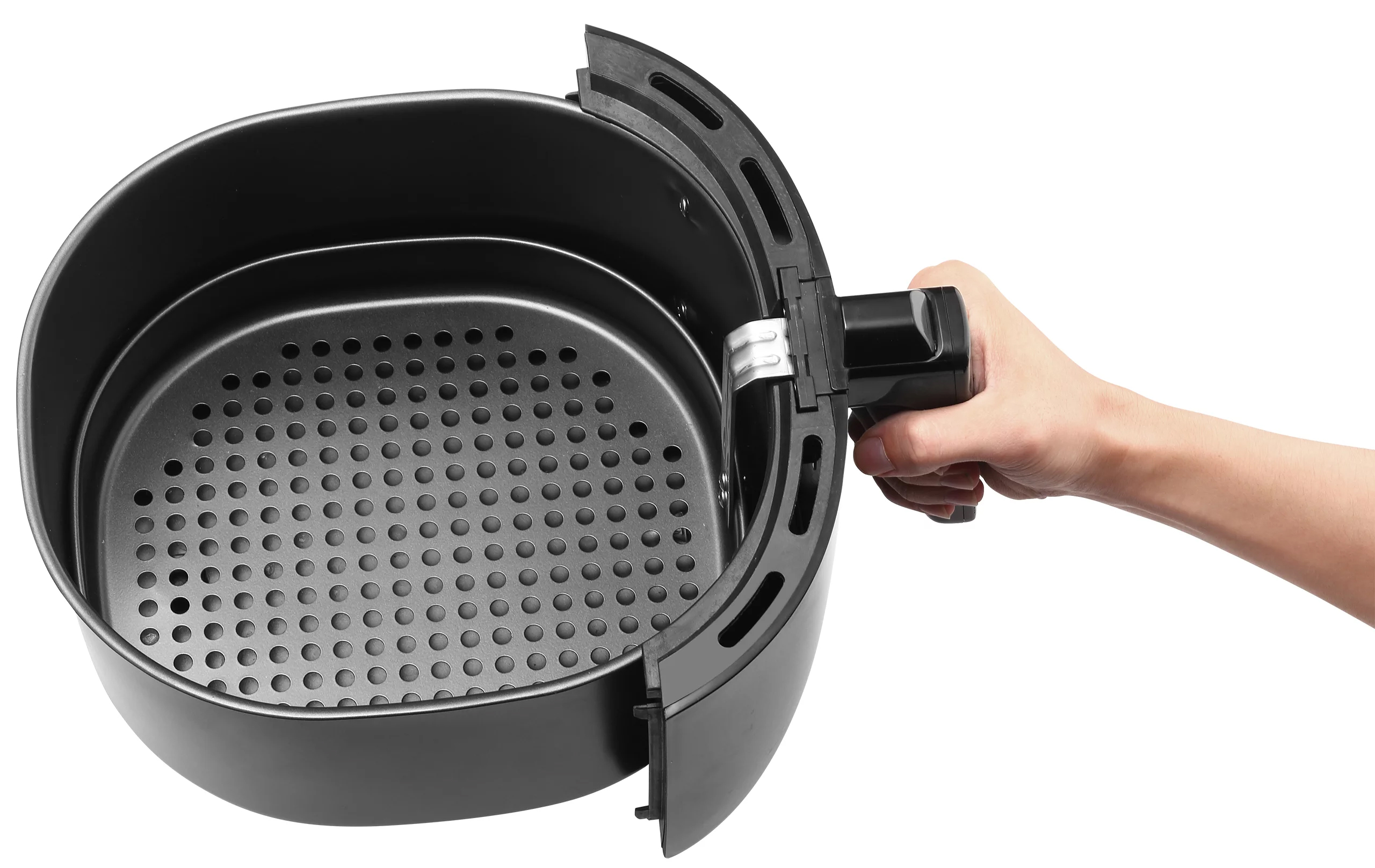 Tay cầm cách nhiệt, cầm nắm không bị nóng, dễ dàng rút ra khỏi nồi chiên để vệ sinh bên trong và cất giữ gọn gàng sau khi sử dụng.