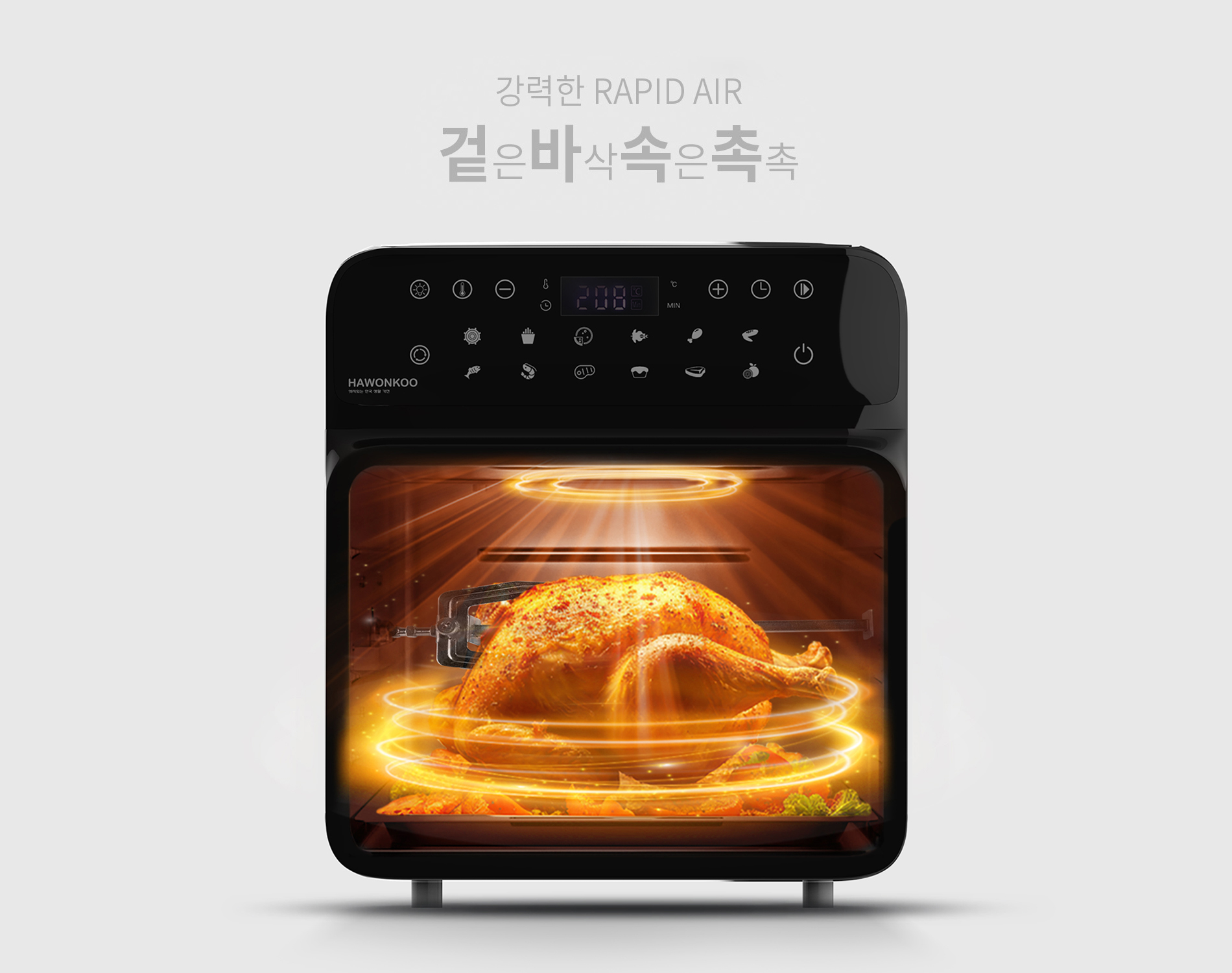 Hawonkoo AFH-120 được tích hợp 12 chương trình nấu mặc định đã được thiết lập sẵn nhiệt độ và thời gian bao gồm chiên nướng thông thường, khoai tây chiên, pizza, gà nguyên con, đùi gà, cánh gà, thịt, cá, tôm, làm bánh, beef steak, hâm nóng/ rã đông.