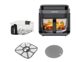 Nồi Kalite KL6000 trang bị đầy đủ phụ kiện đi kèm: khay nướng, lót giỏ chiên, lưới chắn dầu phục vụ hiệu quả cho việc chiên rán đồ ăn.