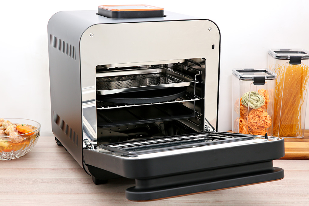 – Ngoài ra, lò còn có 3 chế độ điều chỉnh tay: hấp, chiên không dầu, hấp kết hợp chiên nướng.