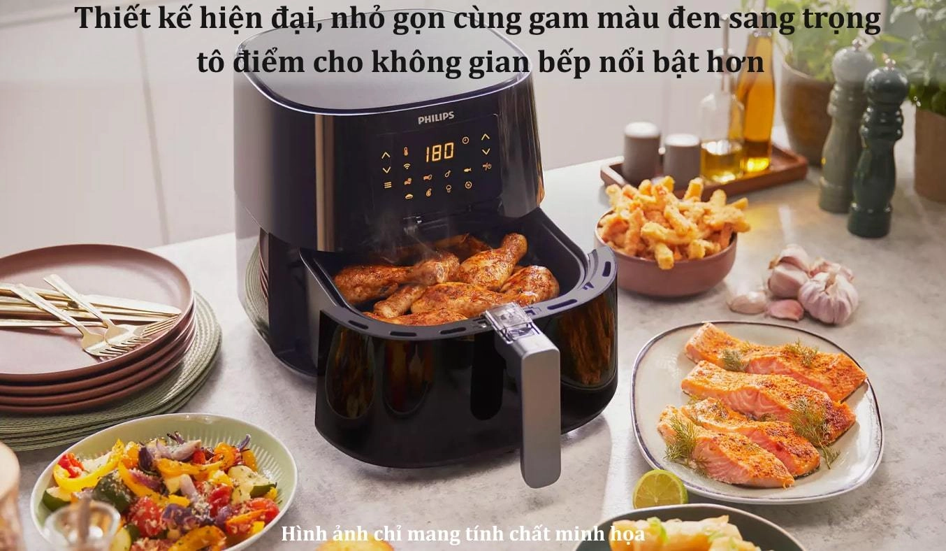 Nồi chiên không dầu Philips 6.2 lít HD9280/90 thiết kế hiện đại, nhỏ gọn cùng gam màu đen sang trọng tô điểm cho không gian bếp thêm phần nổi bật.