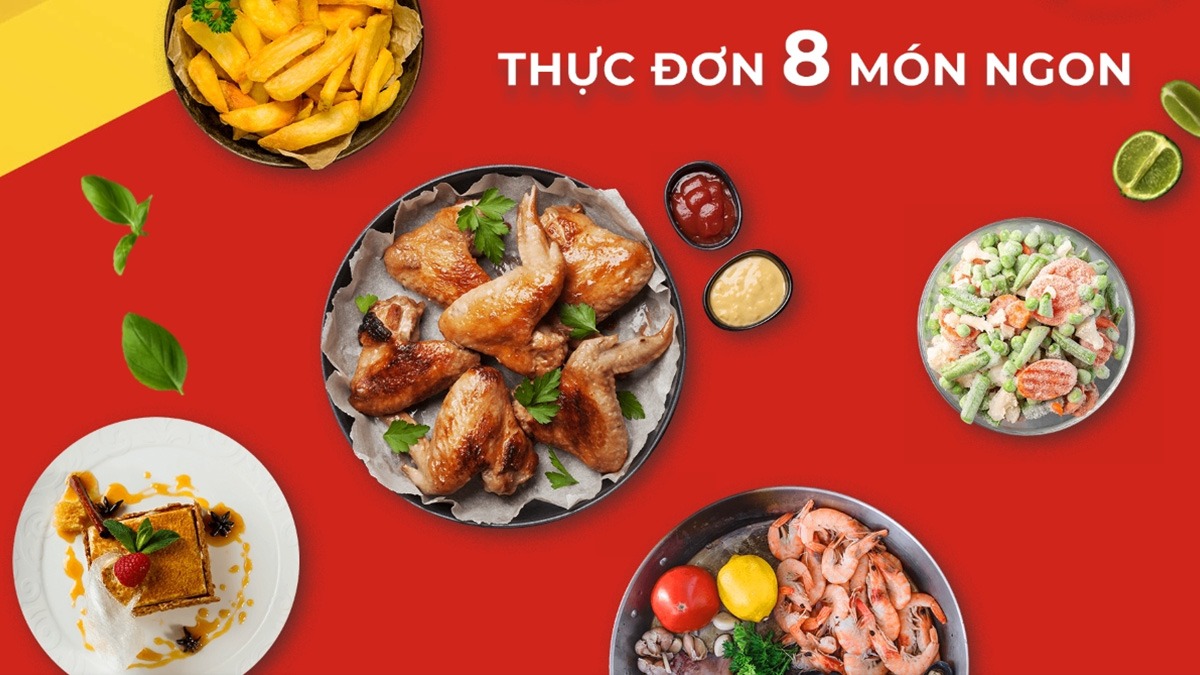 Thiết bị được tích hợp 8 thực đơn tự động vô cùng tiện lợi, bao gồm: khoai tây chiên, bít tết, rau xanh, gà, bánh nướng, cá, đồ đông lạnh và pizza. Các thực đơn tự động này giúp bạn chế biến các món ăn nhanh chóng, đơn giản mà vẫn đảm bảo thơm ngon hấp dẫn.