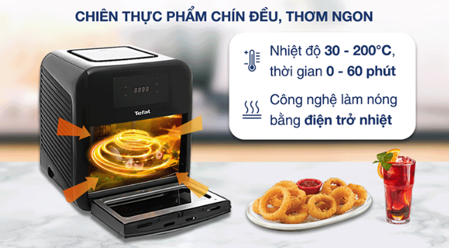 – Mẫu nồi chiên không dầu Tefal này có công nghệ làm nóng bằng điện trở nhiệt, giúp thức ăn chín đều các mặt, thơm ngon hấp dẫn.