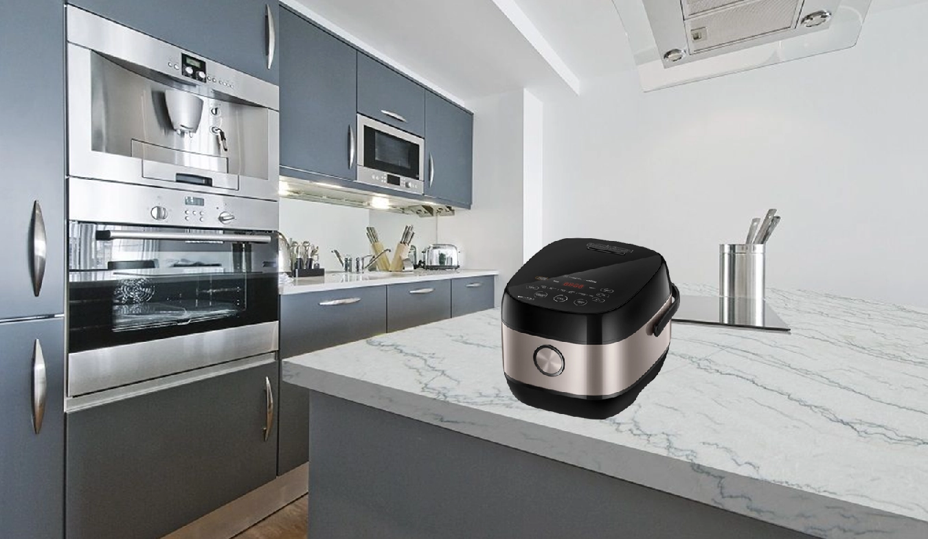 Nồi cơm điện Toshiba 1 Lít RC-10IX1PV sở hữu thiết kế chắc chắn, màu đen kết hợp vàng đồng sang trọng góp phần tôn thêm nét đẹp hiện đại của mọi không gian bếp của bạn. Ngoài ra, nồi còn tích hợp đa dạng chức năng nấu đa, với bảng điều khiển cảm ứng có màn hình hiển thị rõ ràng hỗ người dùng quan sát và đáp ứng nhu cầu sử dụng và chế biến thức ăn, hứa hẹn sẽ làm hài lòng hội chị em yêu bếp.