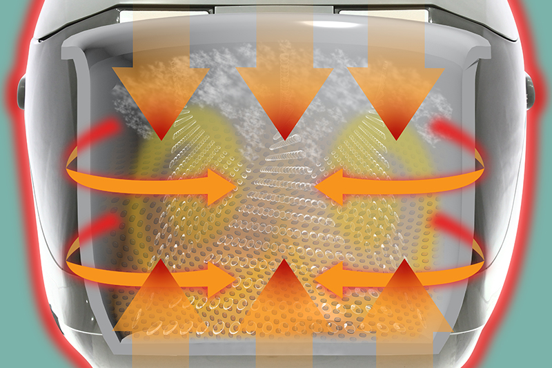 Nồi có 3 mâm nhiệt, phát nhiệt đều từ dưới đáy nồi, từ trên xuống và xung quanh thân nồi giúp cơm chín đều, thơm ngon. Nắp nồi có đĩa nhiệt giúp giữ ấm trong thời gian dài, đồng thời tránh làm hơi nước rơi xuống làm cơm nhão. Bên cạnh đó, đĩa nhiệt có thể tháo rời dễ dàng tiện cho việc vệ sinh.