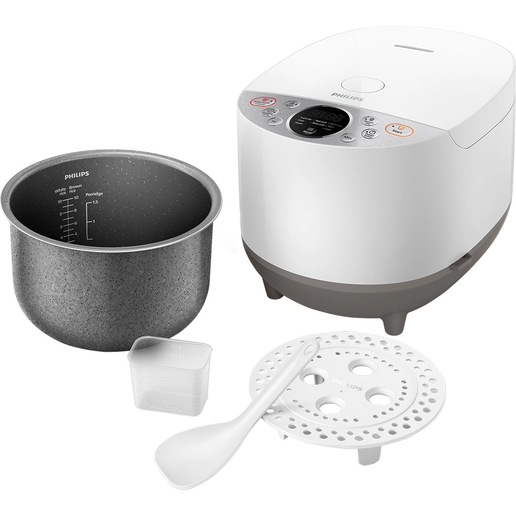 Nồi cơm điện tử Philips 1.8 lít HD4515/55 có thiết kế sang trọng cùng gam màu trang nhã hài hòa với không gian bếp. Nắp trong có thể tháo rời cho bạn dễ dàng vệ sinh. Đi kèm nhiều phụ kiện tiện cho bạn nấu nướng: cốc đong, muỗng cơm, xửng hấp. Nồi cơm có dung tích 1.8 lít phù hợp với gia đình có từ 4 đến 6 thành viên.