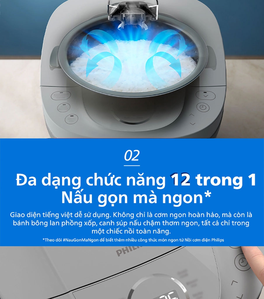Với công suất 860W, nồi cơm điện Philips HD4719/32 giúp tiết kiệm thời gian nấu, không cần phải chờ đợi quá lâu để có một bữa cơm thơm ngon. Công nghệ FreshDefense giúp giữ cơm luôn ấm và thơm lâu trong 48 giờ mà không làm mất đi hương vị hay chất lượng.