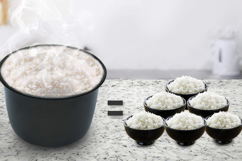 Nấu được khoảng 8 – 10 cốc gạo (cốc kèm nồi) tương đương 4 lon sữa.