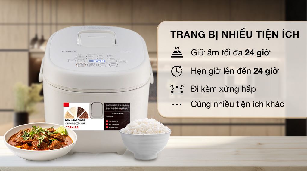 Bên cạnh đó, nồi cơm điện Toshiba còn có tính năng giữ ấm tự động, giữ cơm nóng hổi và thơm ngon trong suốt 24 giờ mà không cần phải nấu lại, giúp tiết kiệm thời gian và năng lượng.