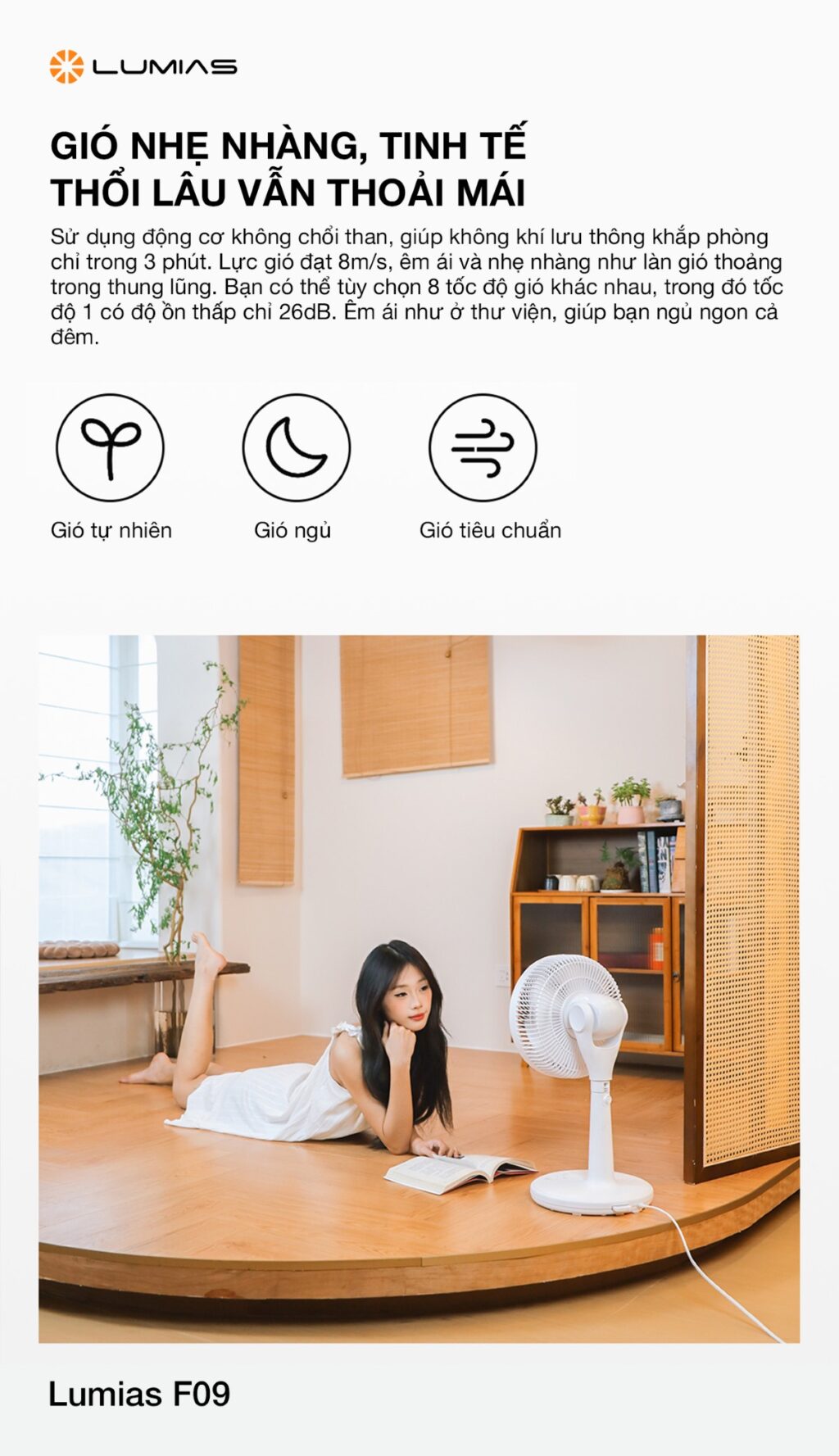 Trong những ngày hè oi bức, một chiếc quạt không chỉ cần mát mà còn phải êm, đẹp và thông minh. Lumias F09 là mẫu quạt cây thế hệ mới của thương hiệu Lumias, được thiết kế tối ưu cho nhu cầu sử dụng trong gia đình, văn phòng hay phòng ngủ. Với động cơ DC siêu êm, 8 cấp độ gió và khả năng xoay 360°, đây là lựa chọn lý tưởng cho những ai yêu thích sự tiện nghi và hiện đại.