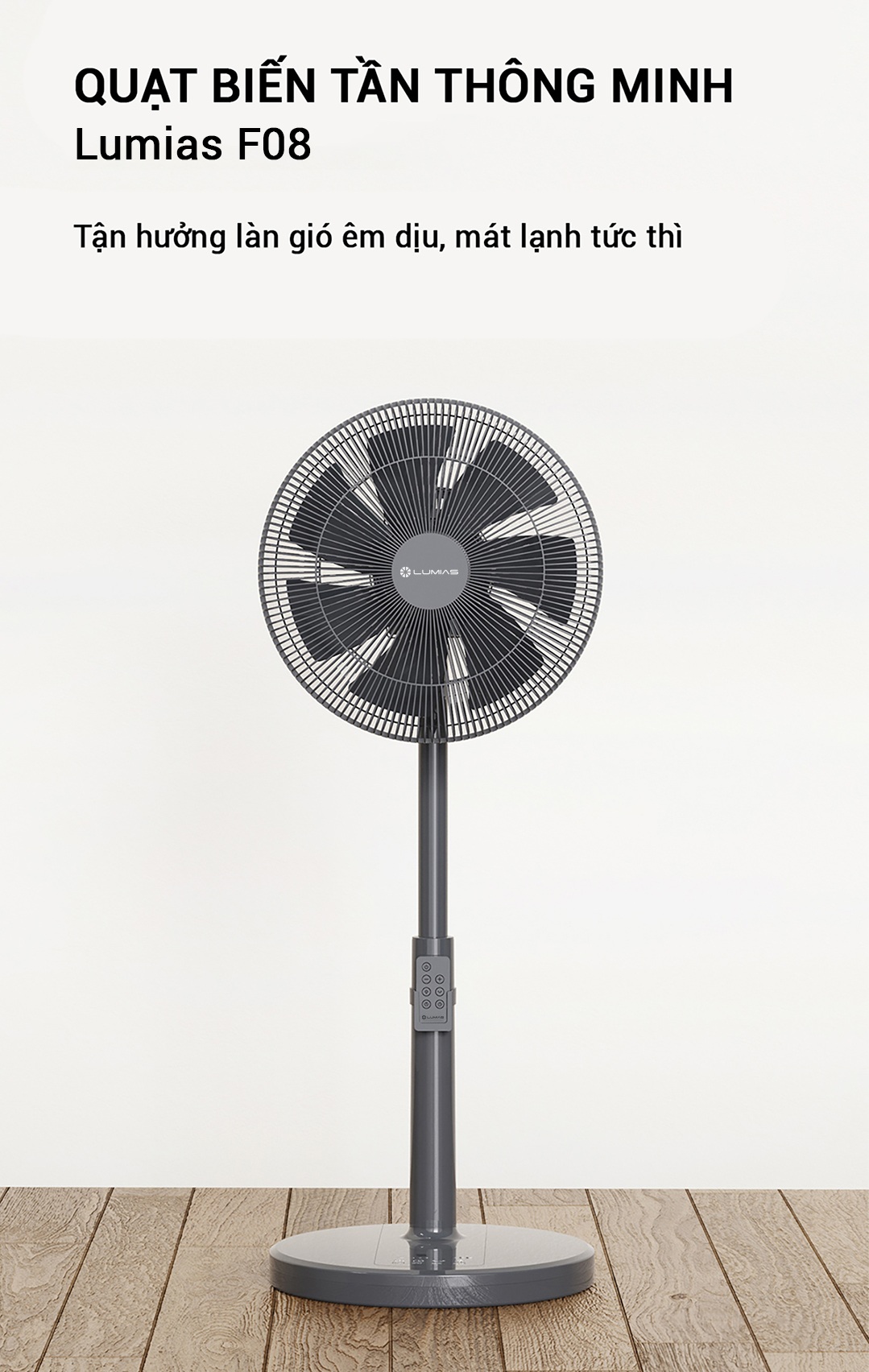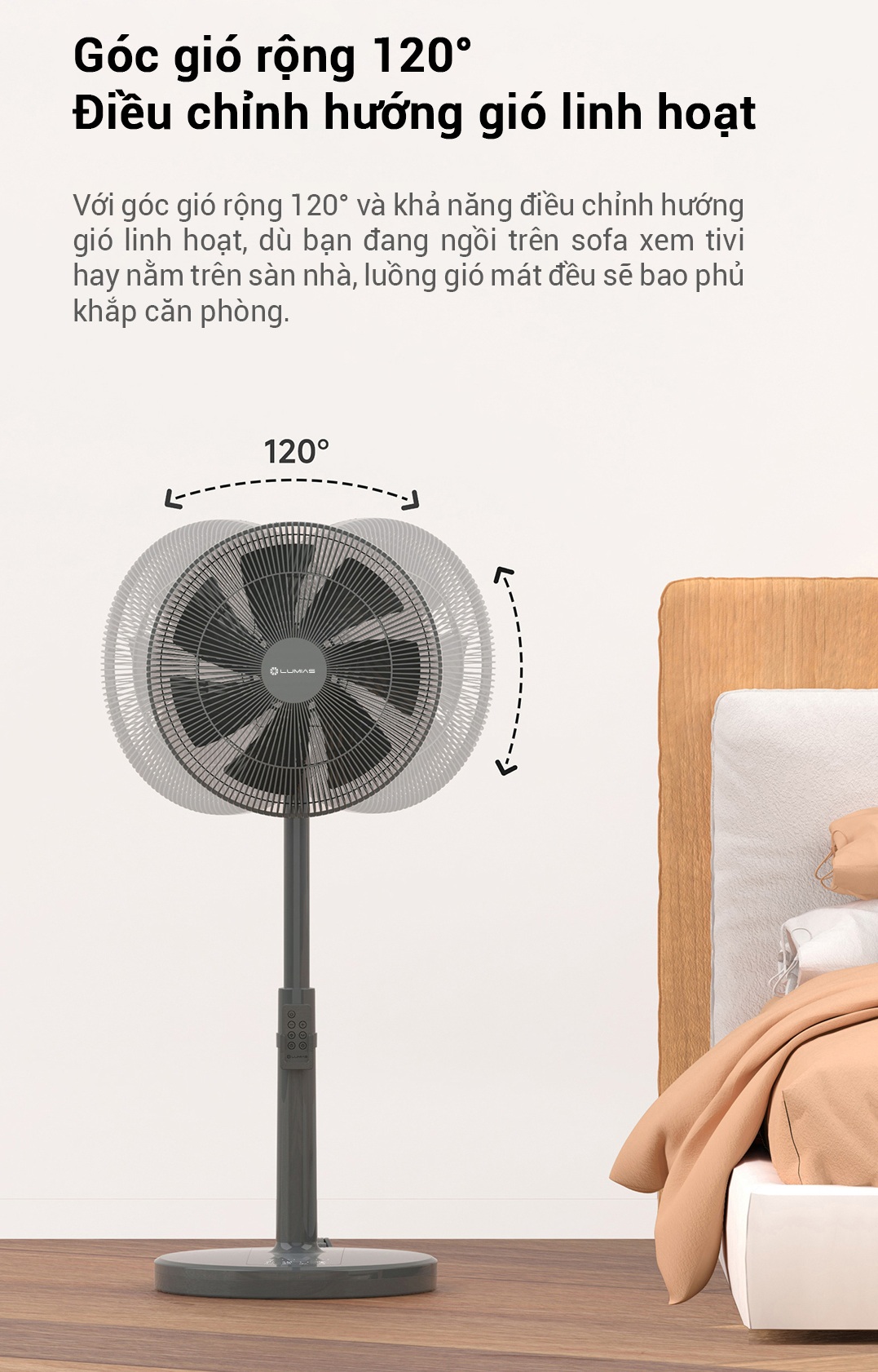 Quạt điện biến tần Lumias F08 có góc gió rộng 120° thoải mái điều chỉnh