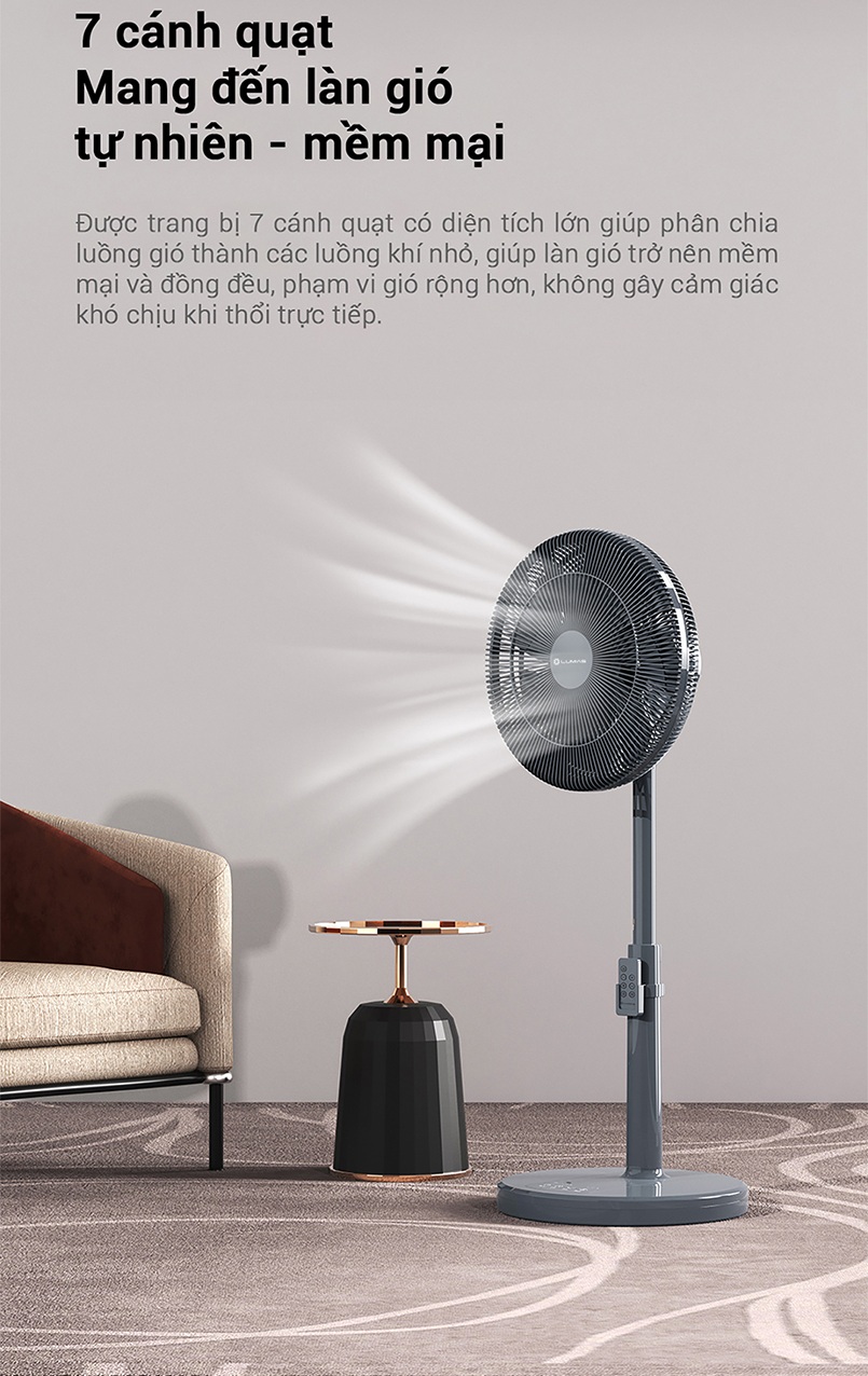 Quạt điện biến tần Lumias F08 được trang bị 7 cánh quạt có diện tích lớn