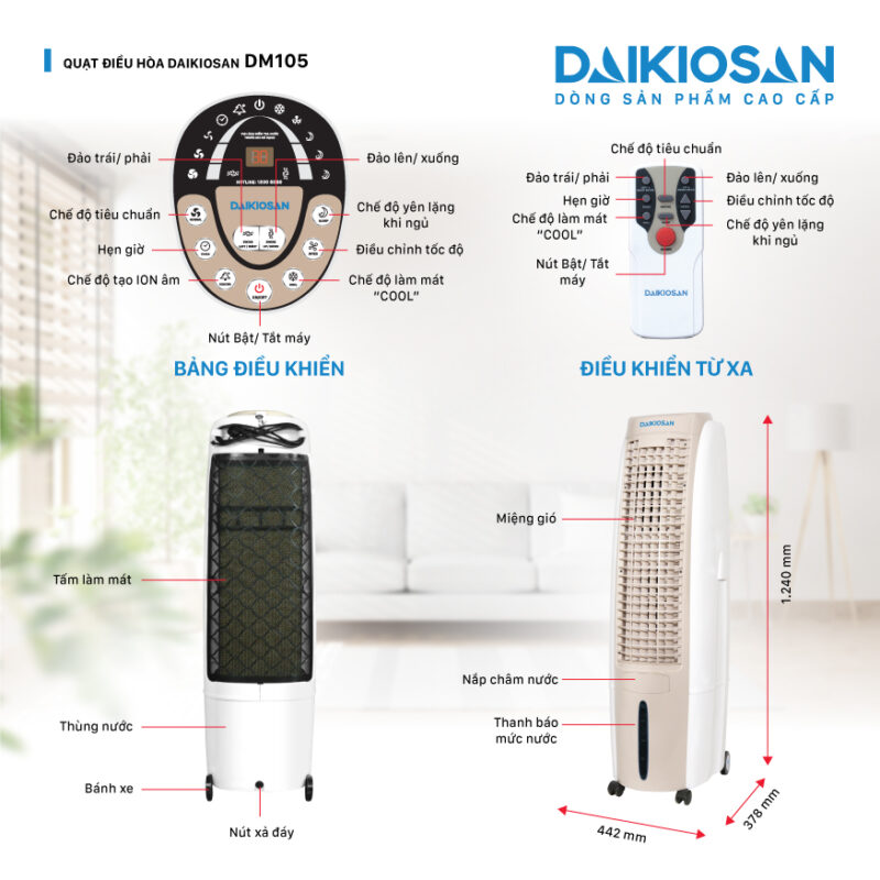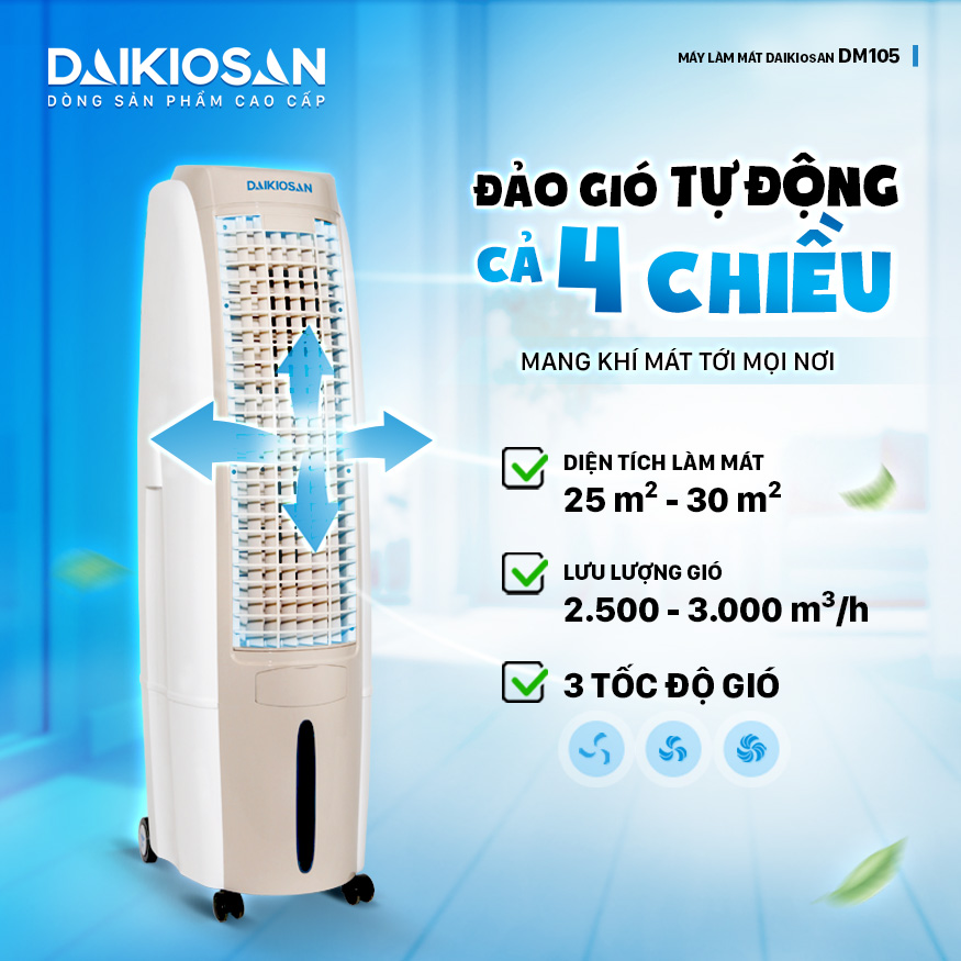 Quạt điều hòa Daikiosan DM105 đồng hành cùng bạn vượt những năm nóng gắt của thời tiết nhờ: