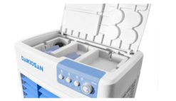 Máy làm mát không khí (quạt điều hòa) Daikiosan DM107 có 2 hộp đá khô được tặng kèm, giúp làm mát sâu và nhanh chóng hơn, đồng thời tạo ra không khí mát mẻ và thoải mái. Bạn chỉ cần bỏ đá khô vào ngăn đông tủ lạnh rồi lấy ra để vào hộp chứa đá và sử dụng để hạ nhiệt những ngày nóng bức.
