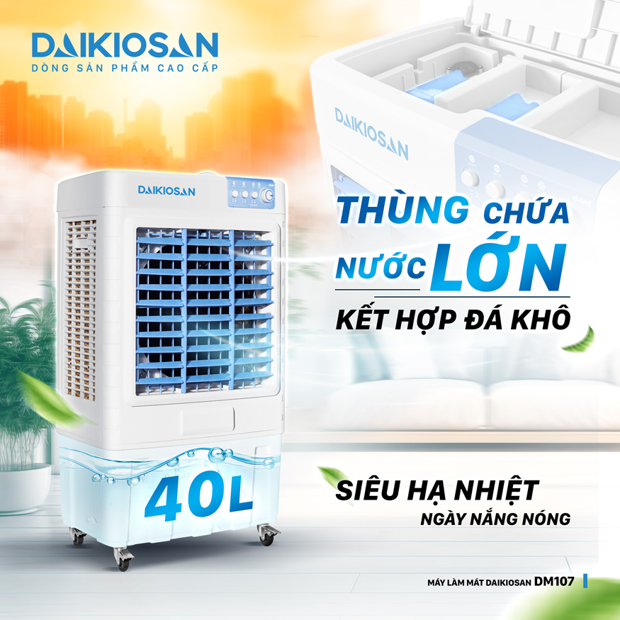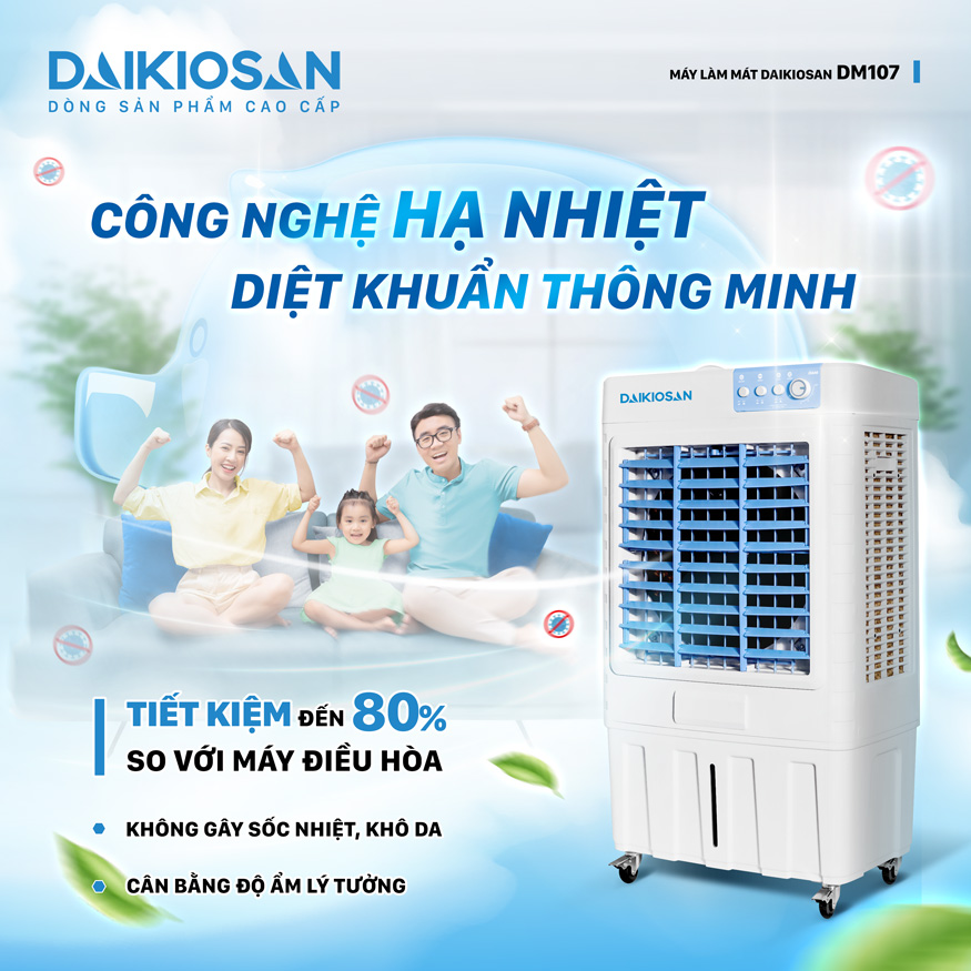 Chế tạo từ vật liệu nhựa cao cấp an toàn, thân thiện với môi trường, sản phẩm này giữ cho bề ngoài luôn sáng sủa và sạch sẽ theo thời gian. Máy làm mát không khí Daikiosan DM107 hoàn toàn có thể là một món đồ nội thất trong gia đình bạn.