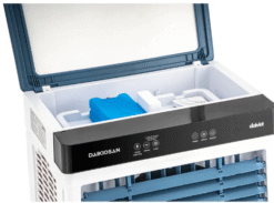 Nếu những ngày nóng bức bạn hãy sử dụng 2 hộp đá khô được tích hợp trong máy để bỏ vào ngăn đá tủ lạnh. Sau khi đá đông hãy bỏ vào hộc đầu máy để hạ nhiệt sâu hơn nhé. Đây là cách làm mát vô cùng hiệu quả và an toàn cho sức khỏe.