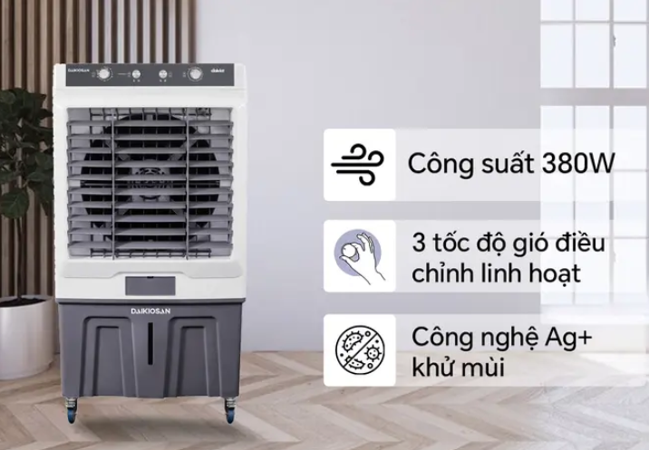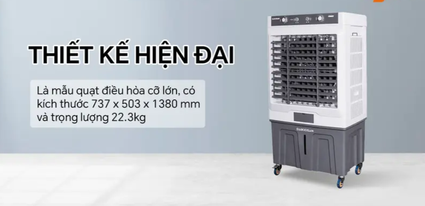 Quạt điều hòa Daikiosan DM210 không chỉ nổi bật với tính năng ưu việt, mà còn gây ấn tượng với thiết kế hiện đại và sang trọng. Máy có màu sắc trang nhã, cùng với kiểu dáng hiện đại, phù hợp với nhiều phong cách nội thất.