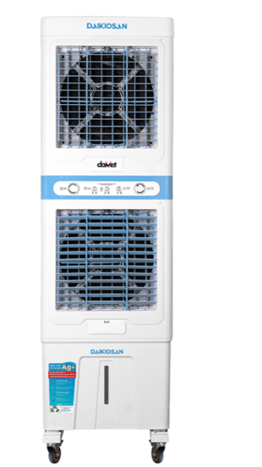 Quạt điều hòa Daikiosan DM211 sử dụng công nghệ làm mát bằng hơi nước thế hệ mới với lưu lượng gió 9.000 – 11.000 m3/h, tốc độ lưu lượng gió 13,6 – 16 m/s giúp cung cấp lượng khí mát được phân bổ thành 2 miệng gió trên và dưới giúp gió phân tán đều khắp mọi nơi, toả khí ra được xa hơn so với dòng thương mại chỉ có một miệng gió.