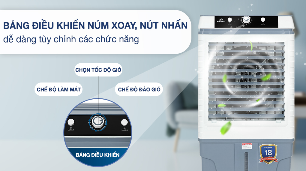 – Mẫu quạt điều hòa Hòa Phát này có dung tích bình chứa 35 lít.