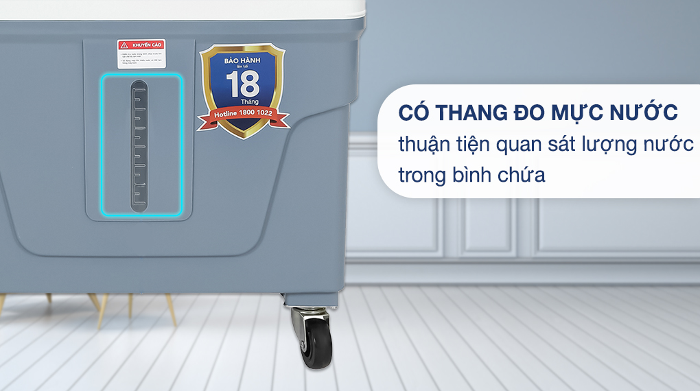 – Thiết kế có mức chia thang đo mực nước giúp bạn dễ quan sát khi đổ nước vào bình chứa và tiện theo dõi lượng nước trong bình chứa.