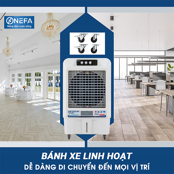 Nếu Quý khách có nhu cầu muốn quạt điều hòa hơi nước để sử dụng cho các không gian lớn với mục đích sử dụng cho các trung tâm tổ chức sự kiện, tiệc cưới, nhà xưởng, nhà hàng, quán ăn hay cho thuê…Tham khảo ngay mã CC90 đến từ thương hiệu NEFA. Đây là dòng quạt có khả năng làm mát hiệu quả và nhanh chóng cho diện tích từ 45-70m2 trở lên. Đặc biệt có nhà máy sản xuất và lắp ráp tại Việt Nam, đảm bảo giá thành rẻ, sẵn linh kiện thay thế, cùng với chế độ bảo hành rõ ràng.